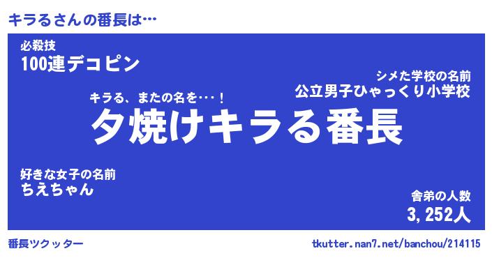 | ヒーロー風カッコイイあだ名 | 『スーパーキラル』『ウルトラキラるマン』 |