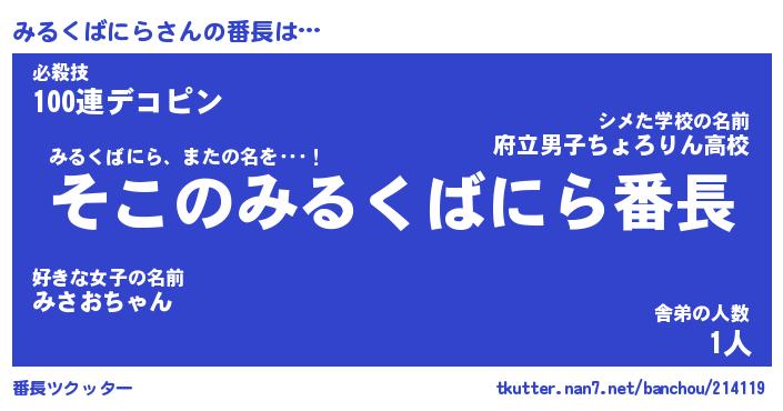 | ヘコむあだ名 | 『みるっふぃ~』『つくし』 |