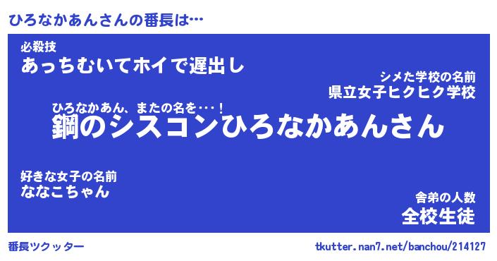 | ヘコむあだ名 | 『ひろにー』『つくし』『ひろ太郎』 |