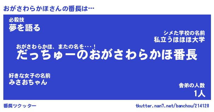 | ピコ太郎風あだ名 | 『オコ四郎』『ピオ次郎』『オガ次郎』 |
