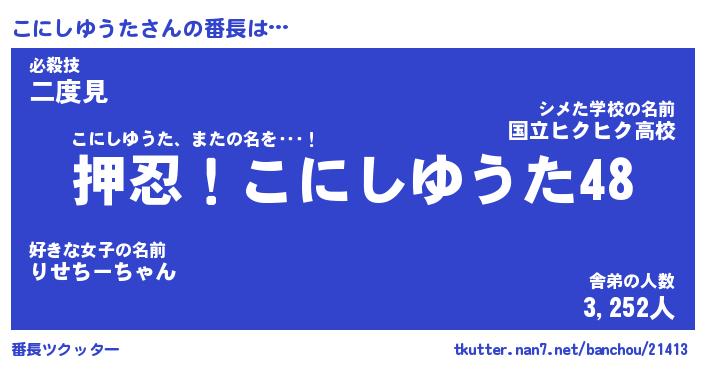 | ヒーロー風カッコイイあだ名 | 『スーパーコニシユウタ』『炎刃騎士コニ』 |