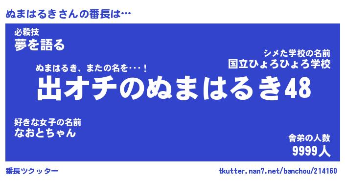 | 伝説のあだ名 | 『伝説のスナイパーぬまはるき』 |