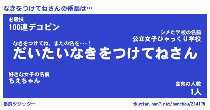 | ヘコむあだ名 | 『なきにゅー』『つくし』『なきっぺ』 |