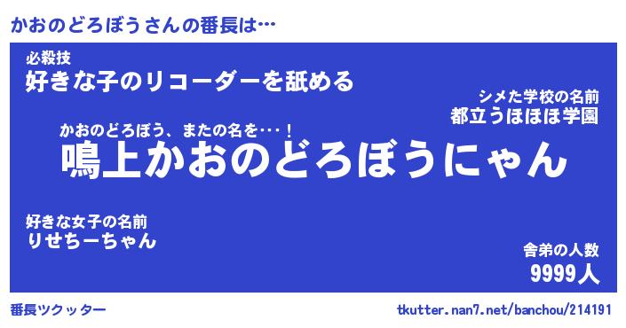 | ヘコむあだ名 | 『かおにゅー』『なまこ酢』 |