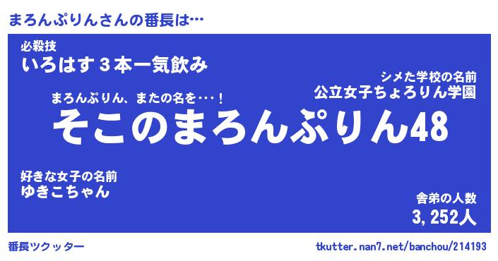 | 伝説のあだ名 | 『不死鳥のスナイパーまろんぷりん』 |