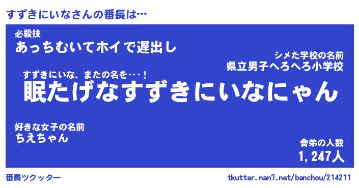| 2回繰り返すあだ名 | 『すずすず』『すすずず』『ねばねば』 |