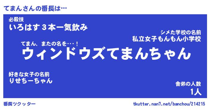 | 意味不明あだ名 | 『ペロリンてまん』『てまんフォーエバー』 |
