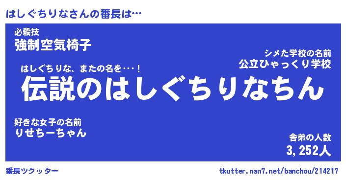 | 伝説のあだ名 | 『伝説のスナイパーはしぐちりな』 |