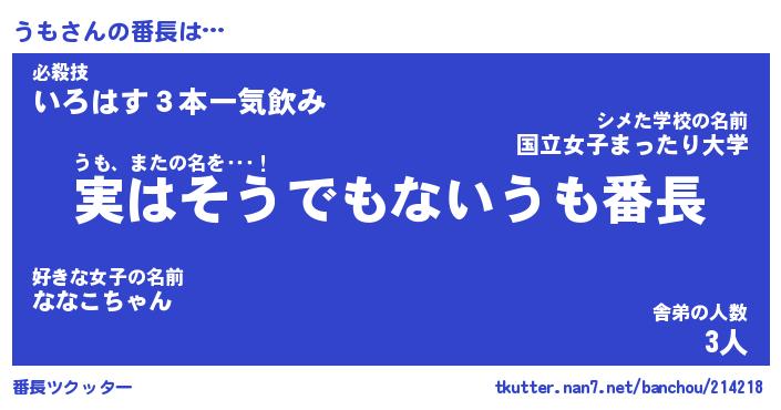 | 意味不明あだ名 | 『ペロリンうも』『うもフォーエバー』 |
