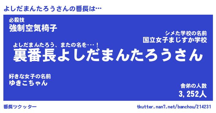 | ポケモン風あだ名 | 『ヨシチュウ』『ヨシダダネ』 |