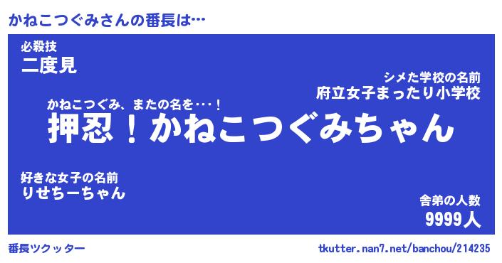 | 伝説のあだ名 | 『封印されしスナイパーかねこつぐみ』 |