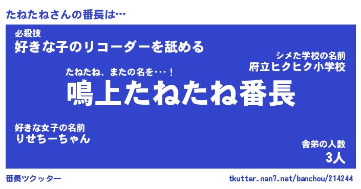 | 意味不明あだ名 | 『ペロリンたねたね』『永久保存たねたね』 |