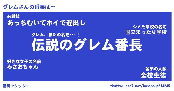 | ヒーロー風カッコイイあだ名 | 『スーパーグレム』『ウルトラグレムマン』 |