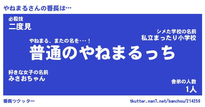 | ヘコむあだ名 | 『やねにゅー』『つくし』 |