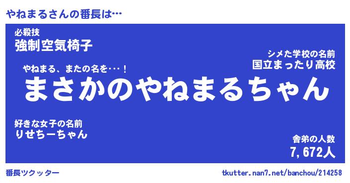 | ヘコむあだ名 | 『やねもー』『つくし』『やねお』 |
