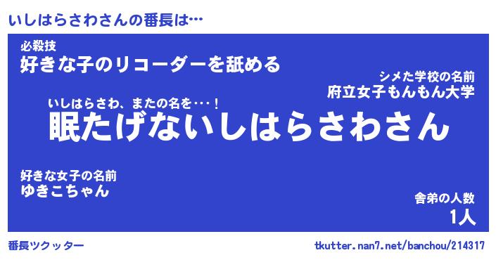 | ヘコむあだ名 | 『いしにー』『なまこ酢』『いしを』 |