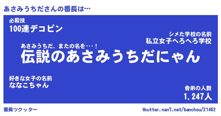 | ポケモン風あだ名 | 『アサチュウ』『アサミダネ』 |