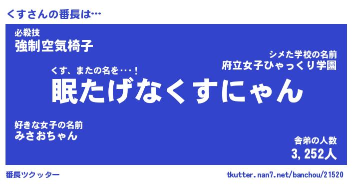 | 伝説のあだ名 | 『封印されしスナイパーくす』 |