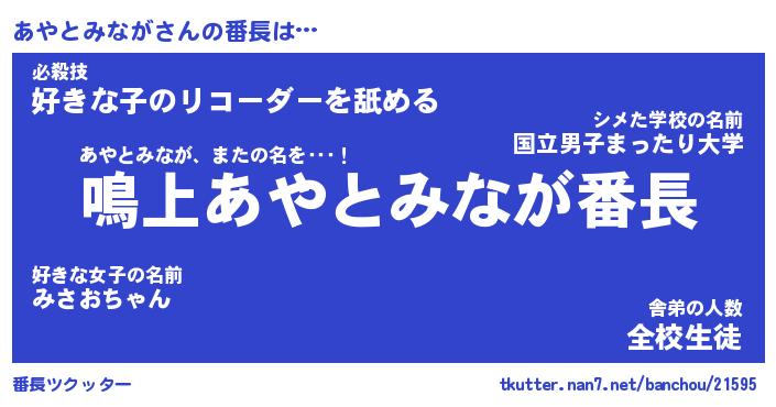 | 伝説のあだ名 | 『封印されしスナイパーあやとみなが』 |