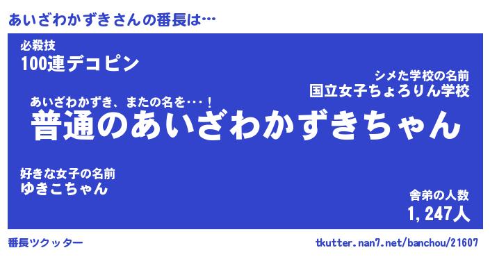 | 男性向けラノベタイトル風あだ名 | 『あいざわかずきの憂鬱』 |
