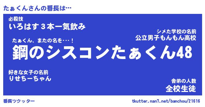 | ヒーロー風カッコイイあだ名 | 『スーパータァクン』『幻影騎士タァ』 |