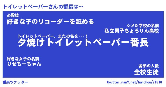 | 料理風あだ名 | 『ネギたっぷりトイレットペーパーの南蛮漬け』 |