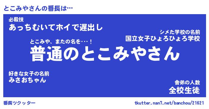 | 肩書あだ名 | 『とこみや社長』『とこみや大統領』 |