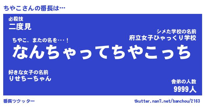 | ファンタジー風あだ名 | 『チヤフェル』『エターナルチヤコー』 |