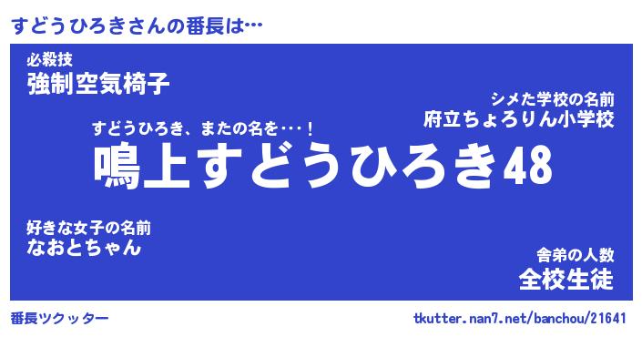 | ヒーロー風カッコイイあだ名 | 『スーパースドウヒロキ』『暗黒騎士スド』 |