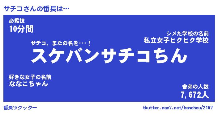 | ヒーロー風カッコイイあだ名 | 『スーパーサチコ』『ウルトラサチコマン』 |