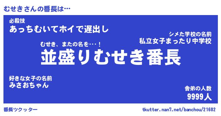 | 男性向けラノベタイトル風あだ名 | 『むせきの憂鬱』 |