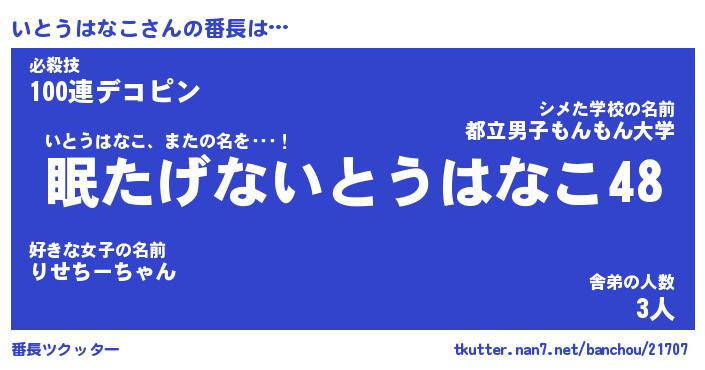 | 伝説のあだ名 | 『封印されし竜騎士いとうはなこ』 |
