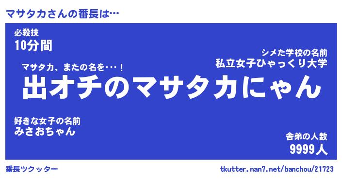 | 意味不明あだ名 | 『ペロリンマサタカ』『永久保存マサタカ』 |