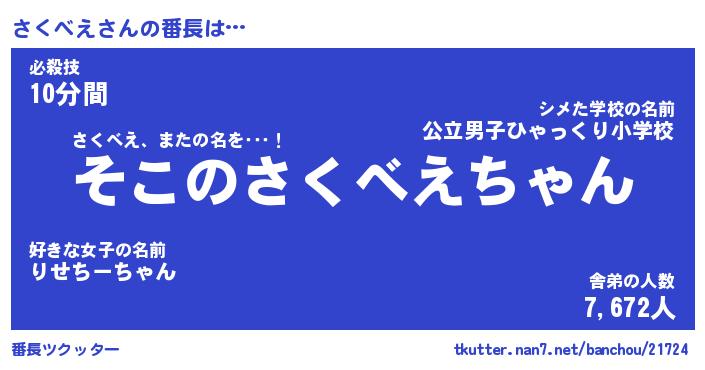 | 意味不明あだ名 | 『ペロリンさくべえ』『永久保存さくべえ』 |
