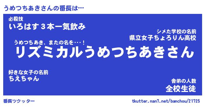 | 肩書あだ名 | 『うめつちあき社長』『うめつちあき団長』 |