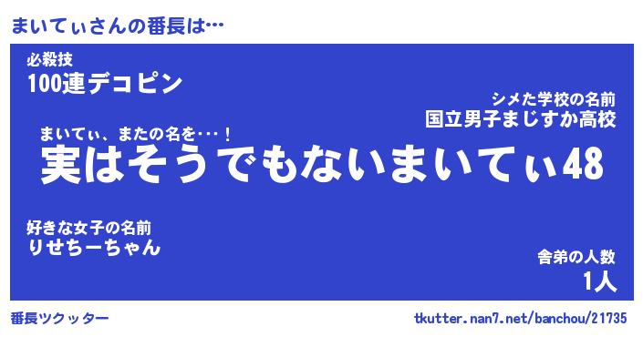| 意味不明あだ名 | 『ペロリンまいてぃ』『永久保存まいてぃ』 |