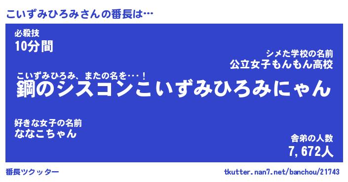 | 伝説のあだ名 | 『封印されしスナイパーこいずみひろみ』 |
