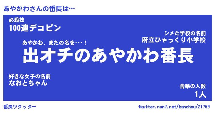 | 肩書あだ名 | 『あやかわCEO』『あやかわ総理大臣』 |