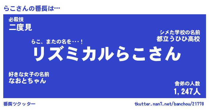 | 意味不明あだ名 | 『ペロリンらこ』『らこフォーエバー』 |