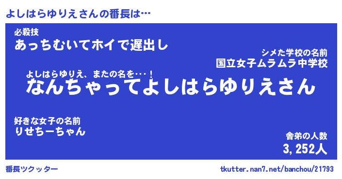 | 伝説のあだ名 | 『伝説の竜騎士よしはらゆりえ』 |