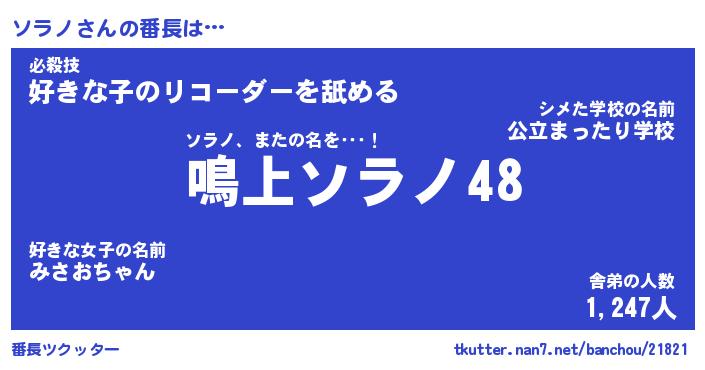 | 意味不明あだ名 | 『ペロリンソラノ』『ソラノフォーエバー』 |