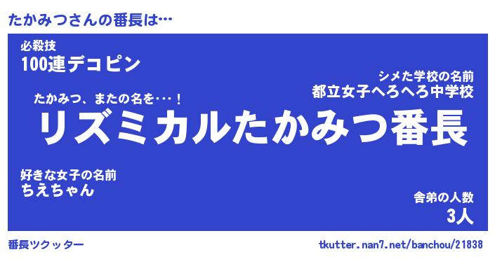 | 男性向けラノベタイトル風あだ名 | 『たかみつの憂鬱』 |