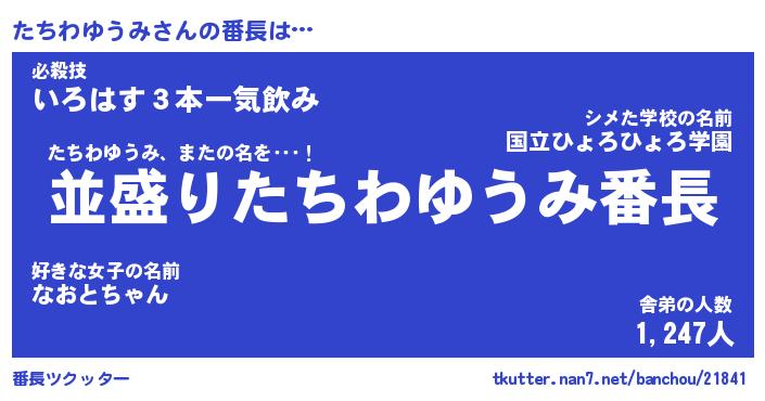 | ヒーロー風カッコイイあだ名 | 『スーパータチワユウミ』『銀牙騎士タチ』 |