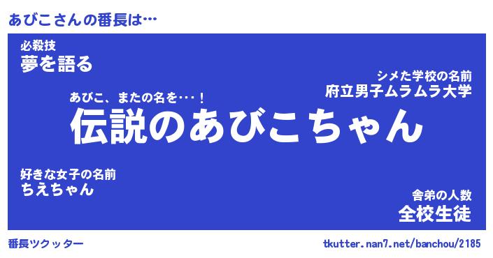 | 肩書あだ名 | 『あびこ店長』『あびこ大統領』 |