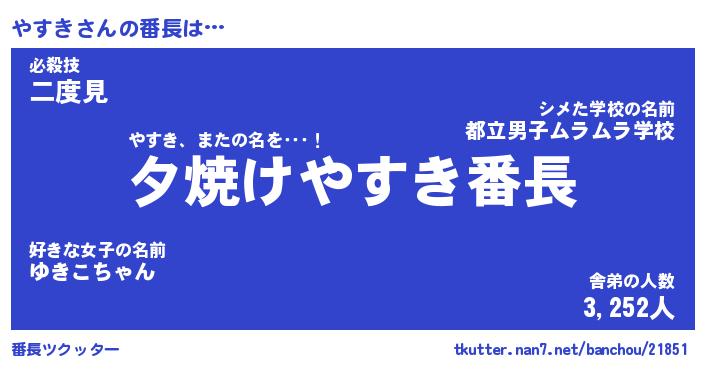 | ピコ太郎風あだ名 | 『ヤコ次郎』『ピヤ太郎』『ヤス六郎』 |