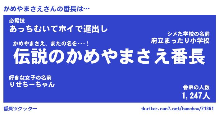 | ヒーロー風カッコイイあだ名 | 『スーパーカメヤマサエ』『銀牙騎士カメ』 |