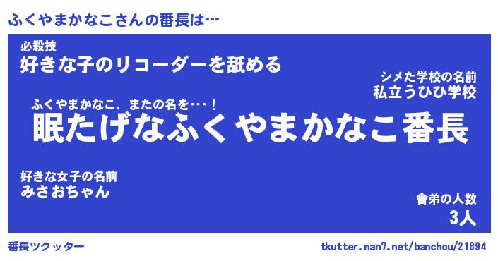 | ヘコむあだ名 | 『ふくふぇ~』『つくし』『ふく太郎』 |