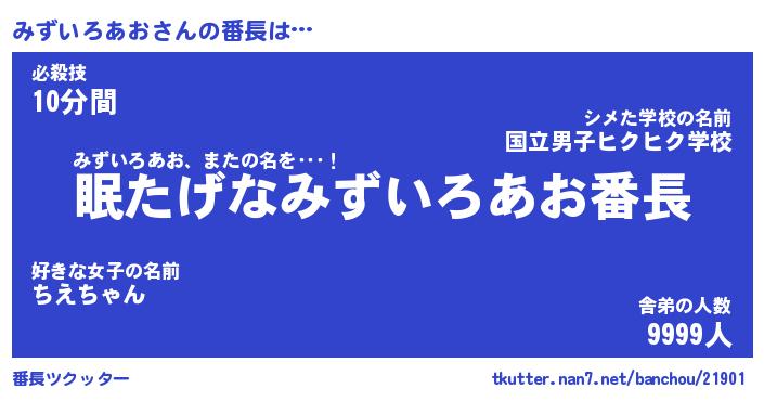 | 伝説のあだ名 | 『封印されしスナイパーみずいろあお』 |