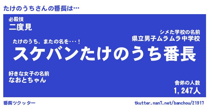 | 2回繰り返すあだ名 | 『たけたけ』『たたけけ』 |