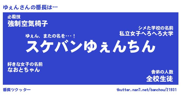 | ヘコむあだ名 | 『ゆぇにー』『つくし』『ゆぇお』 |